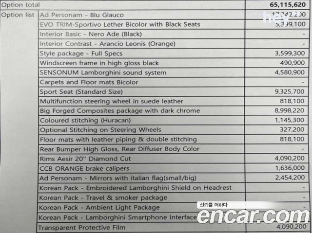 Комплектация Huracan